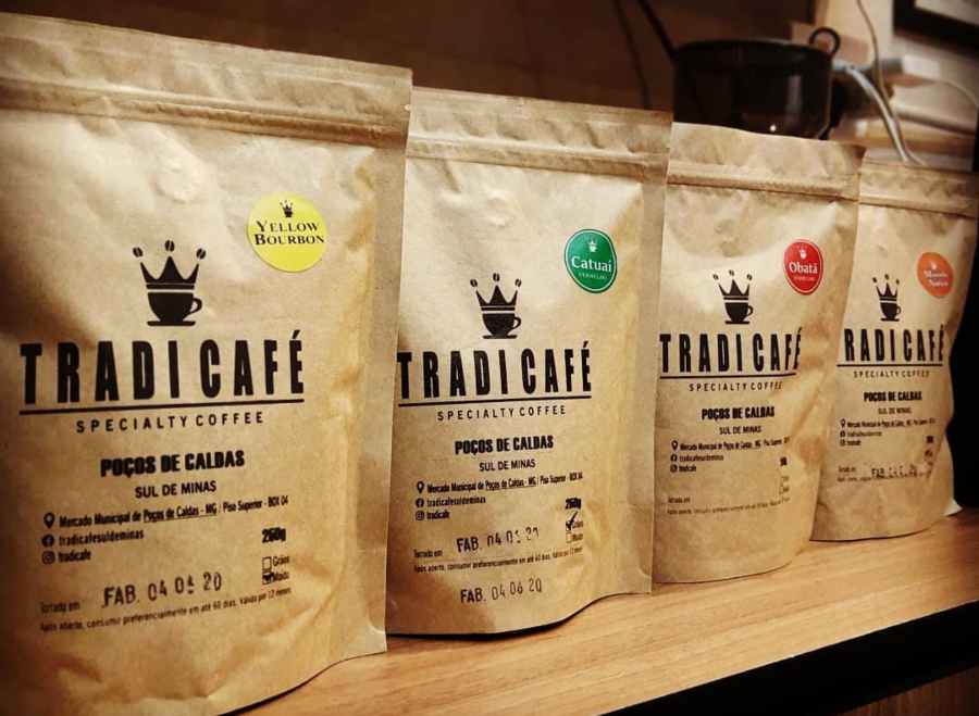 O TradiCafé é uma torrefação de cafés especiais que fica dentro do Mercado Municipal de Poços de Caldas, cidade turística no sul de Minas. A equipe é especializada em micro e nano lotes de cafés da região vulcânica do estado, que compreende municípios com formação geológica diferenciada, presença de águas quentes e com grande teor de enxofre, garantindo um “terroir vulcânico”, termo para caracterizar o DNA do café. Os pequenos lotes garantem que o produto seja de excelentíssima qualidade, já que os grãos são selecionados manualmente e há todo um cuidado artesanal na cadeia de produção. Os grãos são 100% arábica, colhidos no ponto certo de maturação e torrados de maneira controlada. O resultado é um café frutado, de aroma intenso, cítrico e baixa ou média acidez, com destaque para as variedades Mundo Novo, Catuaí e Obatã Vermelhos, Bourbon Amarelo e Blend Tradi, este último um espresso para o dia a dia com o melhor da zona cafeeira do sul de Minas.