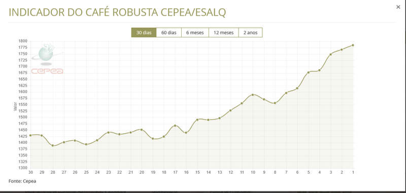 Essa movimentação nos preços reflete uma combinação de fatores, incluindo a demanda consistente pelo produto de qualidade e os desafios climáticos enfrentados em regiões produtoras, que impactam diretamente na oferta.