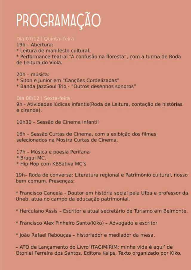O grupo cultural Viola de Bolso realiza nesta semana, de 7 a 10 deste mês, em Eunápolis, mais uma edição do evento anual que tem a sua realização, e já se tornou um dos mais importantes da região.