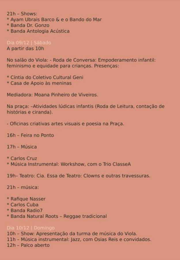A programação terá início na quinta-feira, a partir das 19h00min horas, com a abertura, continuando na sexta-feira, sábado e só encerrando no domingo ao meio dia.