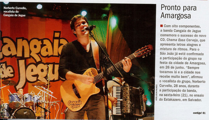 Depois do Jornal Extra! do Rio de Janeiro, publicar no final do ano passado uma matéria falando do sucesso da banda com a musica Dança do Ice, esta semana a Banda Cangaia de Jegue esteve em evidência para todo território nacional. A banda foi citada em uma matéria na revista Contigo! em mais uma oportunidade de mostrar o trabalho que esta banda baiana vem fazendo. Além dos sites e jornais de repercussão local que ajudam a fortalecer ainda mais nome do grupo no cenário musical baiano.