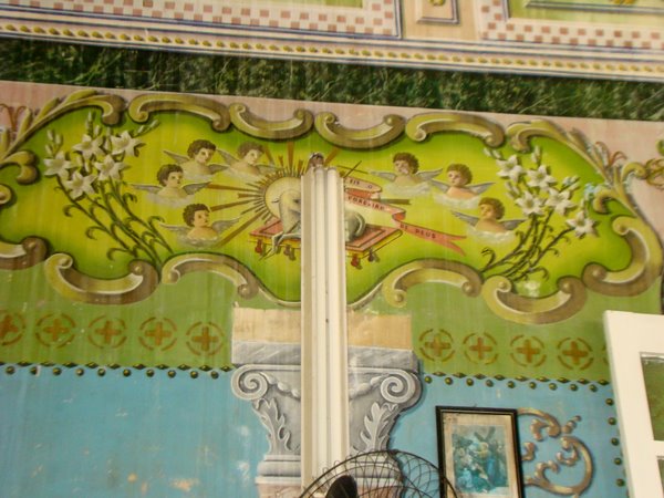 Logo na entrada do templo, uma parede lateral foi quebrada para a construção de uma sacristia. Na parte superior de todas as paredes, as pinturas foram danificadas para a fixação de holofotes e lâmpadas fluorescentes, que substituem a iluminação original – que ficava no teto. No altar, foi destruído um nicho que guardava a imagem da santa padroeira, Nossa Senhora da Conceição. Essas são algumas das intervenções feitas, que já destruiu boa parte da pintura. “Agora, parece que querem mesmo acabar com o que resta desses painéis antigos e valiosos”, protesta o professor.