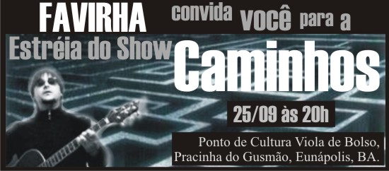No sábado, o palco do ponto de cultura terá a presença do músico e compositor eunapolitano, Fábio Vieira, mais conhecido como Favirha, com o show denominado ”Caminhos”.