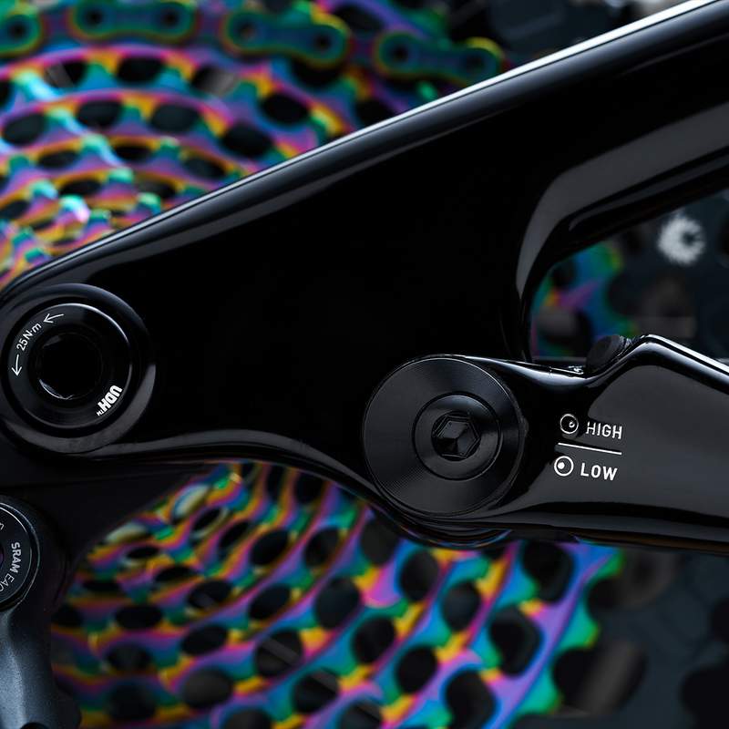 Para afiar a dirigibilidade ao seu estilo de pilotagem em variados terrenos, apenas gire o FlipChip no olho da suspensão traseira e altere em 7mm a altura do movimento central, além do ângulo da caixa de direção em um grau e meio.