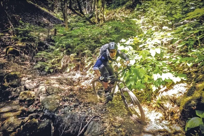 A parte final da trilha é conhecida como Tango da Rainha Louca (Mad Queen’s Tango), pouco mais de 5 km de descida ininterrupta, com curvas fechadas, paredes (wallrides) e saltos no meio da floresta. Está certo, é mesmo um paraíso à altura da realeza do MTB, um exclusivo parque de diversões para os iniciados nas bicicletas de montanha.