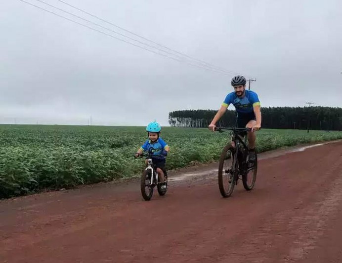 Os pais ainda compartilham as peripécias do filho ciclista no perfil do Instagram.