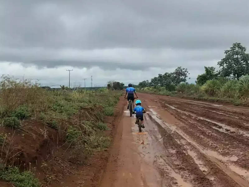 Apesar de já ter um tempo de treino e brincadeiras em cima da bicicleta, na nova bike Enrico só começou a pedalar há 20 dias. “A estrada de terra, após todos estes dias de chuva, estava muito “fofa” e lisa e isso até então era novidade para o Enrico".