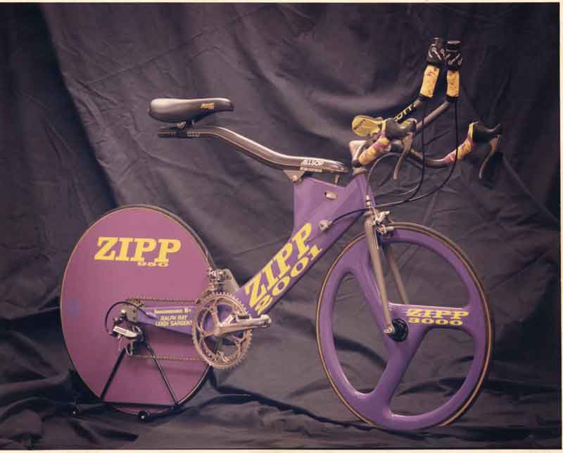 A evolução continuou e a Zipp apresentou em 1989 sua primeira roda de carbono de três raios, a Zipp 3000. Mas o reconhecimento mundial veio em 1990 com o lendário triatleta Mark Allen, seis vezes vencedor do Mundial de Ironman em Kona, no Havaí, utilizando as rodas Zipp com três raios e de perfil alto - Zipp 440 - e a bicicleta Zipp 2001, que imediatamente tornaram-se as armas aerodinâmicas preferidas entre os triatletas.