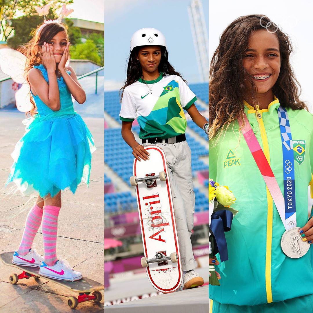 “Saber que muitas meninas já me mandaram mensagem no Instagram falando que começaram a andar de skate ou os pais deixaram andar de skate por causa de um vídeo meu, eu fico muito feliz porque foi a mesma coisa comigo. Minha história e a história de muitas outras skatistas que quebraram todo esse preconceito, toda essa barreira de que o skate era só para menino, para homem, e saber que estou aqui e posso segurar uma medalha olímpica, é muito importante para mim”, concluiu.