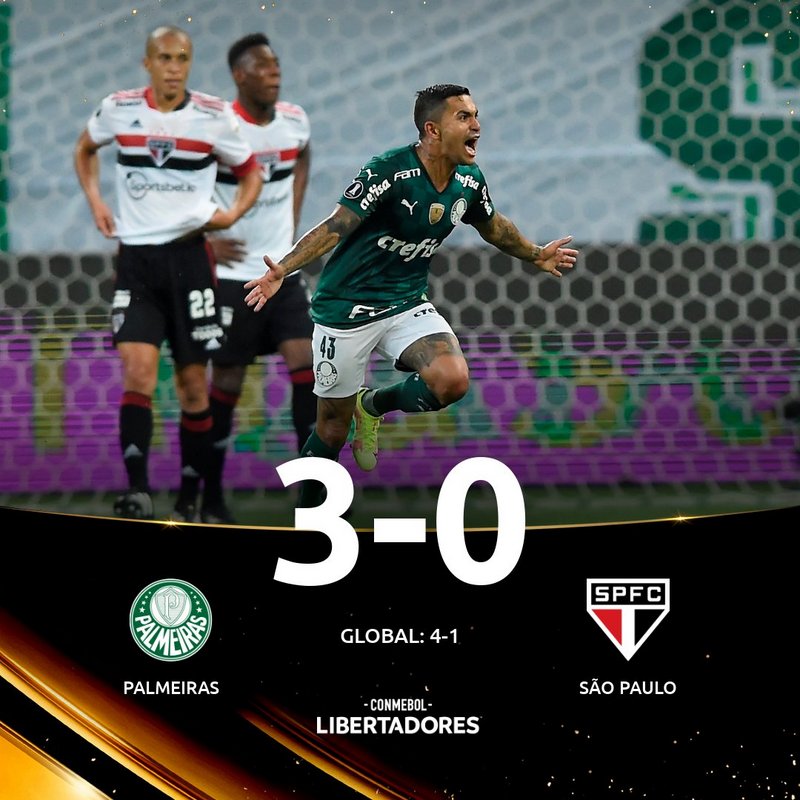 O Palmeiras se tornou o primeiro time brasileiro nas semifinais da atual edição da Copa Libertadores após derrotar o São Paulo por 3 a 0, na noite desta terça-feira (17) no Allianz Parque. O Verdão garantiu sua passagem graças a gols de Raphael Veiga, Dudu e Patrick de Paula.