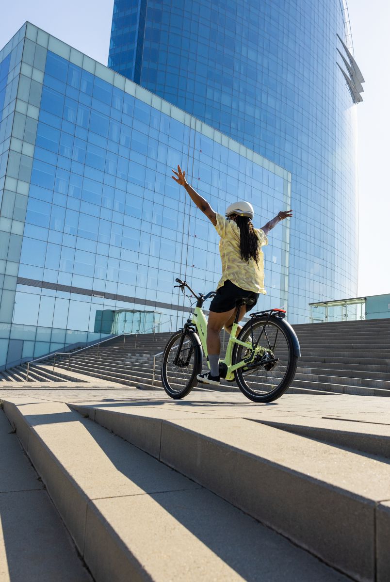 A Como é uma e-Bike confortável e mais descontraída, com o design step-through que entrega a entrada no quadro mais rebaixada disponível no mercado, sendo fácil para qualquer ciclista montar e começar a pedalar. Uma posição mais ereta reduz a pressão nas mãos e no tronco do ciclista e permite que ele foque a atenção na rua à sua frente, com muito conforto.