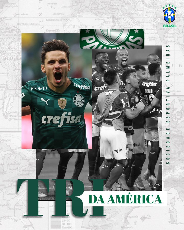 O Palmeiras é tricampeão da Copa Libertadores da América. O Alviverde fez 2 a 1 no Flamengo no estádio Centenário, em Montevidéu, no Uruguai, na tarde deste sábado (27). O primeiro gol palmeirense foi marcado pelo meia Raphael Veiga aos quatro minutos da etapa inicial. Após belo lançamento do zagueiro Gustavo Gómez pela direita para Mayke, o lateral cruzou com perfeição para trás e o artilheiro chegou sozinho para concluir forte e rasteiro para o fundo das redes. Na sequência do primeiro tempo, o jogo foi de muito equilíbrio e forte marcação.