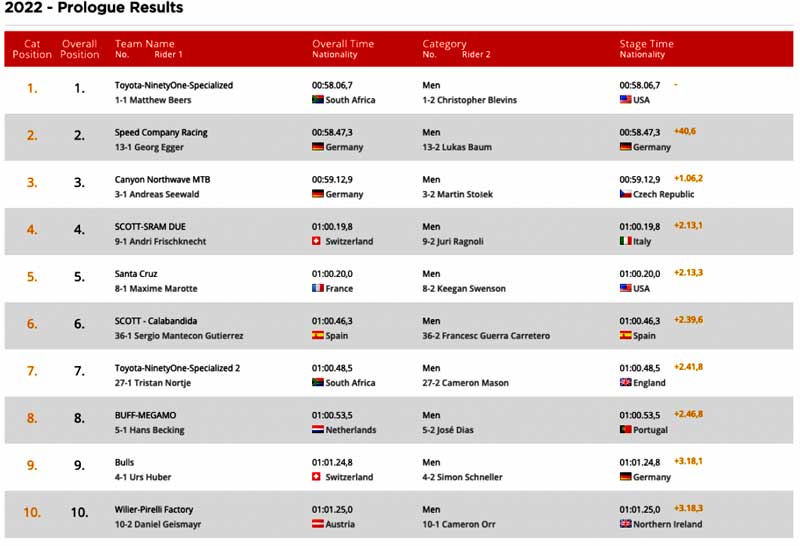 Hoje fez-se um prólogo de 24 km’s. com 700mts. D+ de acumulado, no qual a equipa Toyota-NinetyOne-Specialized com o sul africano Matthew Beers e o norte americano Christopher Blevins, entraram a vencer para defender a vitória do ultimo ano.