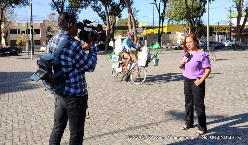 Ele é Valdeni Pinheiro Alves, amazonense, que decidiu depois de muito tempo, sair pelo Brasil afora e, pedalar em prol de entidades beneficentes, como fez hoje em Eunápolis.