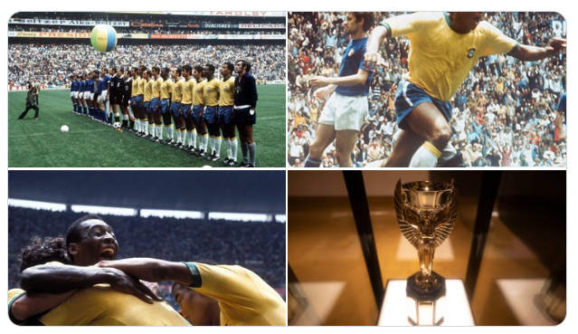“90 milhões em ação, pra frente, Brasil, salve a seleção”. A canção enaltação de Miguel Gustavo se tornou o eterno hino do futebol e é associado tanto ao tricampeonato mundial quanto à época em que a ditadura militar estava no auge. O treinador, agora, era Zagalo e o Brasil podia ser dar o luxo de ter um ataque com Tostão, Rivelino, Pelé e Jairzinho. Em seis partidas, seis vitórias e lances geniais deram ao Brasil a posse definitiva da Taça Jules Rimet. Na decisão, uma goleada impiedosa na Itália: 4 a 1.