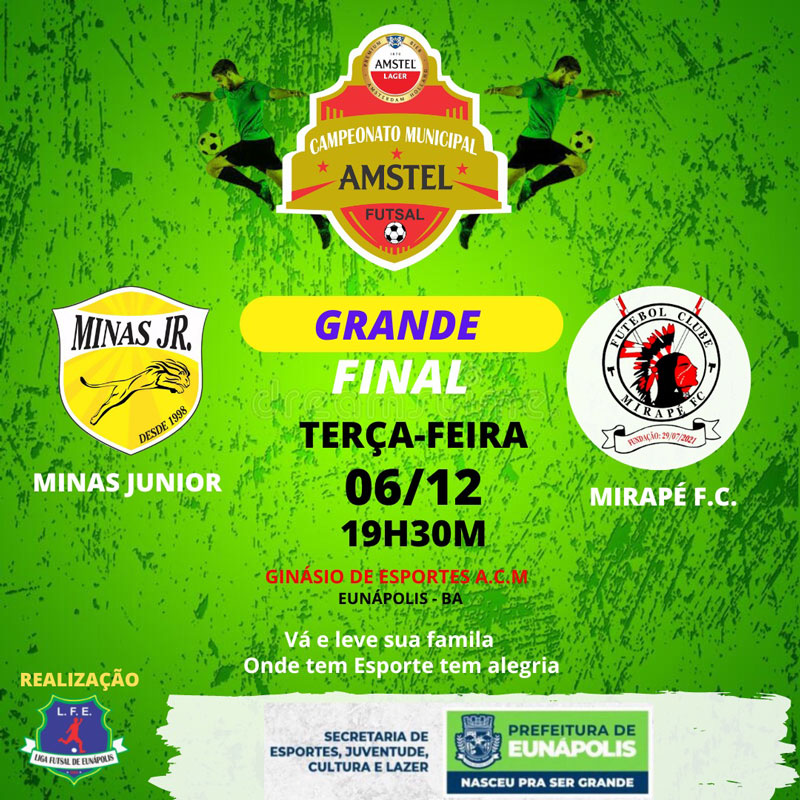 Eunápolis 02/12 - A Liga Futsal de Eunápolis divulgou um comunicado na manhã desta sexta-feira (02/12) a data e horário da decisão da edição de 2022 do Campeontao Eunapolitano Amstel, que será disputada entre Minas Junior x Emapé.