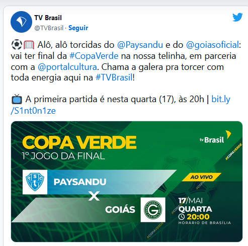 O título da 10ª edição Copa Verde começa a ser decidido na noite desta quarta-feira (17) com o inédito confronto entre o tricampeão Paysandu e o Goiás, no Mangueirão, em Belém, estádio reinaugurado no mês passado após reforma. A bola rola a partir das 20h (horário de Brasília) no primeiro jogo da final, e o último será em 31 de maio, em Goiânia. As duas partidas serão transmitidas ao vivo na TV Brasil, em parceria com a TV Cultura do Pará.
