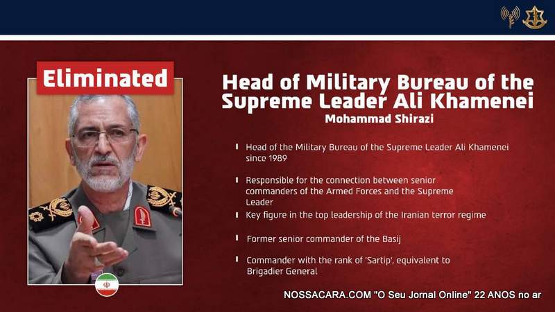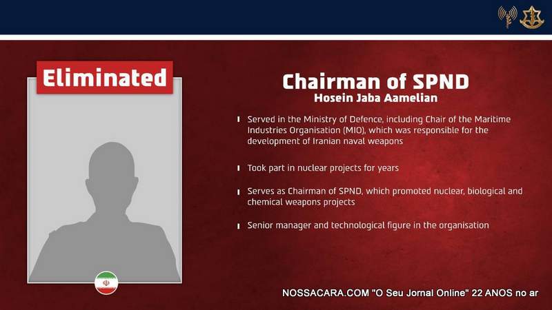 Agora pode ser confirmado que, entre os altos funcionários iranianos, os seguintes oficiais foram eliminados pelo IDF durante o ataque inicial: