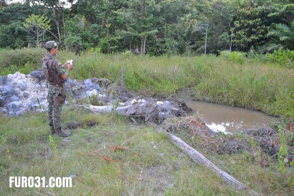 Os analistas constataram que uma grande área estava sendo desmatada com a derrubada de árvores da vegetação nativa e esgotamento de brejos, ações estas, que vinha sendo realizadas com o auxilio de uma maquina retroescavadeira, que foi encontrada no local. O dono da propriedade não foi encontrado e ninguém estava na propriedade no momento da fiscalização.