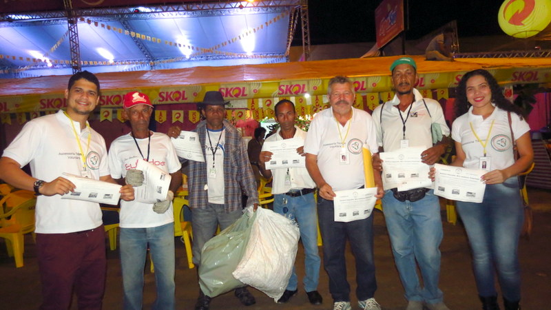 Buscando a inclusão social e promoção do Saneamento Ambiental, a Cooperativa de catadores de Eunapolis - COONAPOLIS se faz presente no espaço do Pedrão para a coleta dos materiais recicláveis. Trabalhos de Educação Ambiental foram realizados junto aos comerciantes presentes ao evento no sentido de segregar corretamente os materiais e facilitar a coleta por parte dos cooperados.