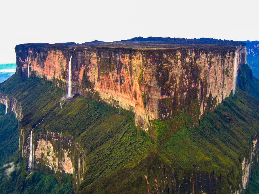 Uma pedra gigante e quadrada no meio do nada e ainda por cima repleta de quedas de água que dão à paisagem um aspecto de paraíso perdido. O Monte Roraima é um tepui, um monte em formato de mesa bastante característico da região das Guianas. A montanha ainda guarda no seu interior inúmeras cavernas, que se interligam e formam a maior caverna de quartzo do mundo.