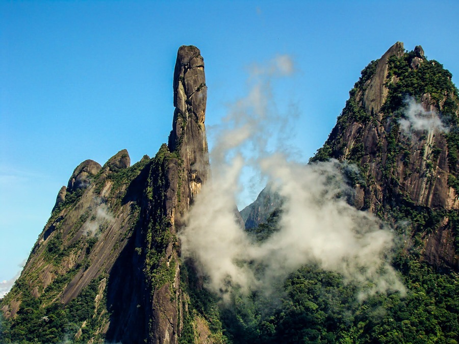 A montanha lembra uma mão com o dedo indicador apontando para o céu. Dedo de Deus é certamente um bom nome para descrever essa estranha formação rochosa. O Dedo de Deus está localizado no Parque Nacional da Serra dos Órgãos e sua primeira conquista aconteceu em 1912, o que lhe rendeu o título de berço da escalada no Brasil.