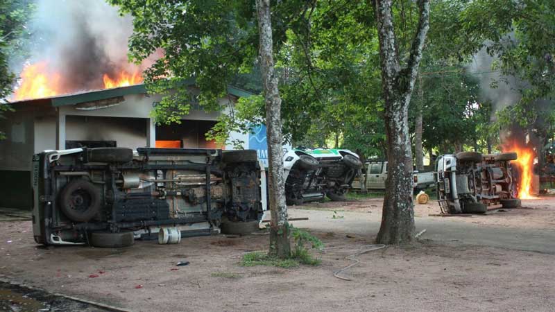Algumas das balsas recolhidas na operação pegaram fogo nesta tarde. Revoltados, os garimpeiros se reuniram para protestar. Os manifestantes invadiram e incendiaram os prédios do Ibama e do Instituto Chico Mendes de Conservação da Biodiversidade (ICMBio).