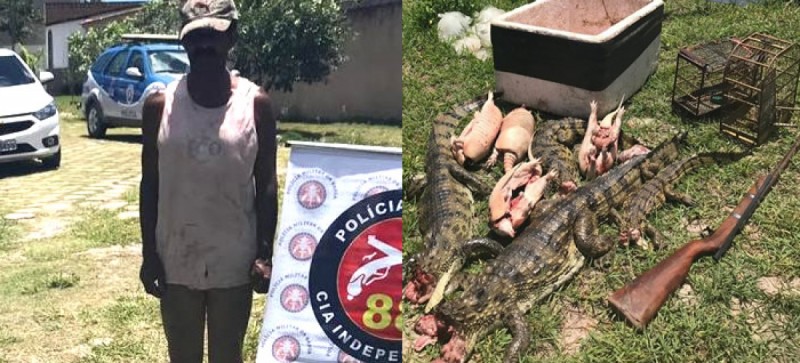 Policiais militares da 88ª Companhia Independente de Alcobaça (CIPM), durante a realização de uma operação de reintegração de posse em uma área às margens do rio Jucuruçu, em Prado, abordaram uma embarcação e prenderam José Bernardo Santana Carrilho, de 53 anos, que transportava jacarés e tatus abatidos, além de pássaros e uma arma de fogo.