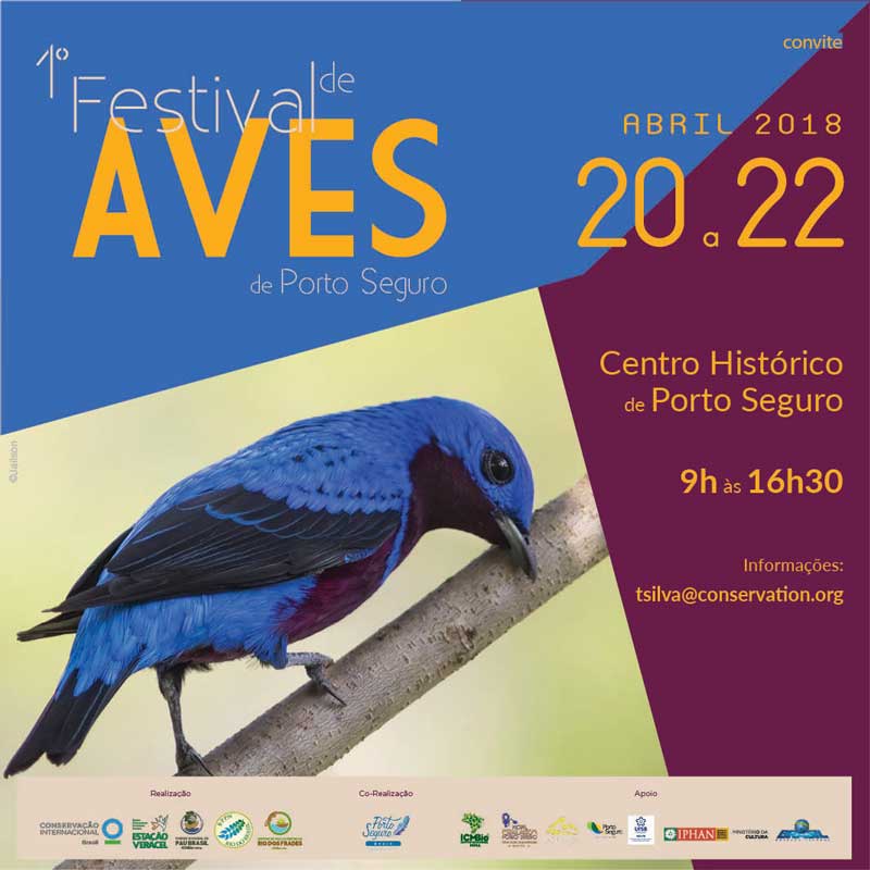A região do Sul da Bahia é abrigo para uma grande variedade de espécies de aves da nossa fauna e atrai pessoas de todo o mundo para a atividade de observação de aves. É neste cenário que será realizado o 1º Festival de Aves de Porto Seguro. Com oficinas temáticas, contação de histórias, exposição fotográfica e apresentações culturais, o festival acontecerá de 20 a 22 de abril, no Centro Histórico de Porto Seguro, das 9h às 16h30. No evento, os participantes não irão encontrar aves em gaiolas, mas terão a oportunidade de aprender sobre as aves surpreendentes da região
