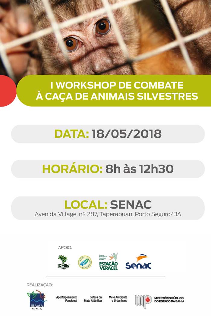 As florestas do sul da Bahia possuem uma grande diversidade de espécies de flora e fauna, mas ainda é um cenário que precisa de cuidados especiais relacionados à preservação e combate a crimes contra animais. Para discutir sobre esse assunto, no dia 18 de maio, acontecerá o 1º Workshop de Combate à Caça de Animais Silvestres, no Senac em Porto Seguro. O evento é uma iniciativa do Ministério Público da Bahia (MP-BA) em parceria com o Centro de Triagem de Animais Silvestres (Cetas) do IBAMA de Porto Seguro.