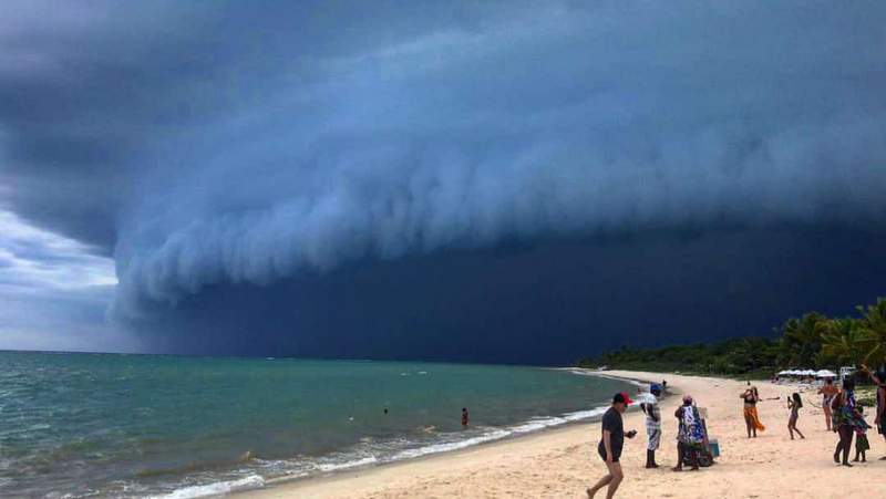 Uma nuvem gigantesca se forma sobre a cidade de Porto Seguro, no Extremo Sul da Bahia.
