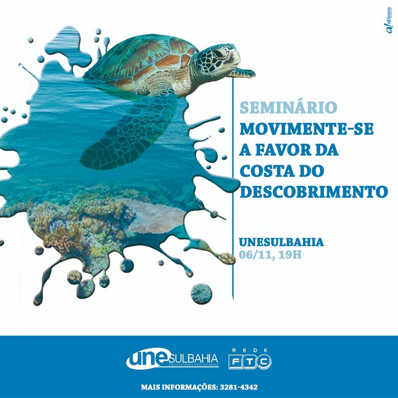 Nesta quarta-feira, 06, às 19h, a Faculdade Unesulbahia promove um seminário para discutir o impacto do vazamento de óleo que atinge a costa do descobrimento e qual o papel da sociedade neste episódio. O evento Movimente-se a favor da Costa do Descobrimento pretende reunir profissionais de diferentes áreas para debater o tema com perspectivas diferentes, não só no contexto ambiental, mas também social, econômico e de saúde.