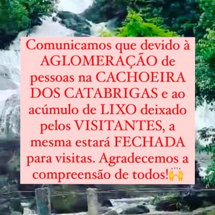 Após aglomeração e muito lixo deixado pelos visitantes, a Cachoeira dos Catabriga é fechada por proprietários. Os donos alegam que os visitantes estão desrespeitando as regras de conservação do local