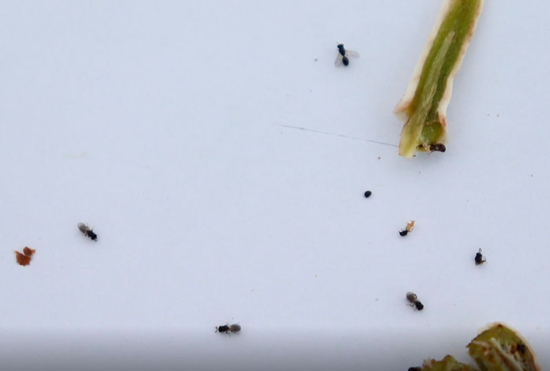 O produtor identificou essa espécie de inseto encontrado em suas orquídeas como uma mosca chamada de Melanagromyza orchidearum. Ela tem cerca de 3mm comprimento, o corpo de coloração preta e as asas claras e transparentes. “Essa mosca coloca seus ovos nas pontas das raízes das orquídeas. Os ovos eclodirão em pequenas larvas que se alimentarão do tecido da raiz e aparecerá uma dilatação na medida em que a larva for crescendo”. Explicou.