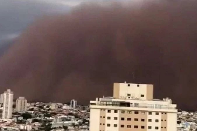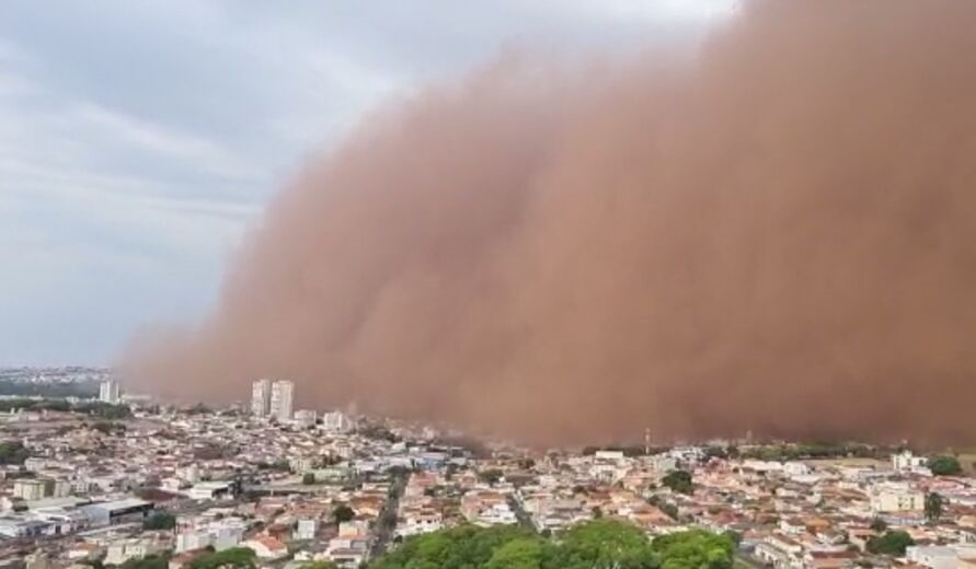 A nuvem de poeira que encobriu neste domingo (26) cidades do nordeste de São Paulo e do sul de Minas Gerais assustou os moradores. O fenômeno se dá por uma combinação de ventos intensos, tempo seco e onda de calor na primavera.