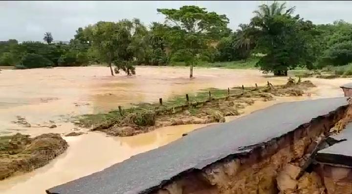 O asfalto também cedeu em várias estradas que ligam Itamaraju a outros municípios, como Jucuruçu, onde as chuvas deixaram a cidade submersa, forçando moradores a subir nos telhados e nas lajes em alguns locais.