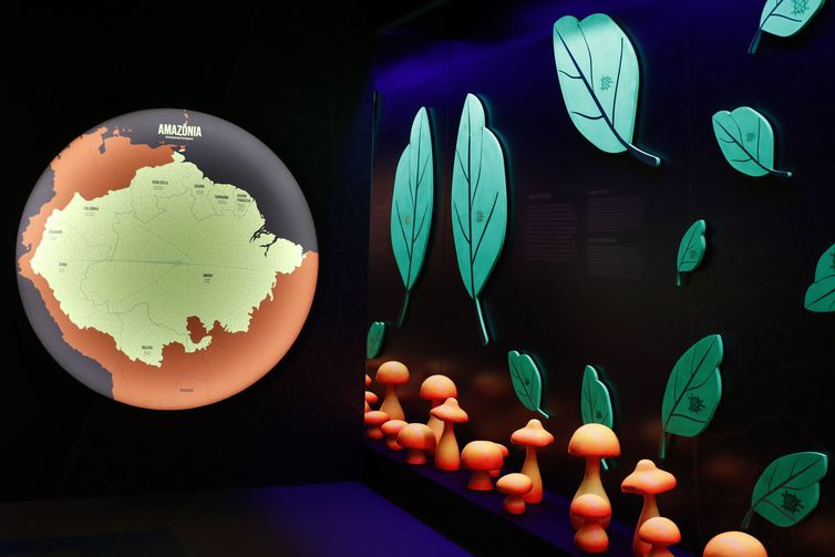 No passeio, o visitante vai ver que a mostra não está restrita ao Brasil, porque a Amazônia se espalha por oito países e um território e tem, atualmente, mais de 30 milhões de habitantes, milhares de espécies de plantas, o que a transforma em uma das regiões de maior biodiversidade do mundo.