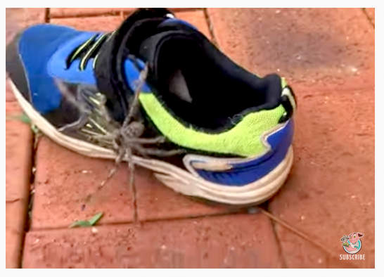 No último dia 21 de dezembro, uma família esbarrou com esta grande aranha caçadora em seu galpão, que lhes deu um baita susto. A aranha, que pode chegar até 30 cm de comprimento, havia se escondido no calçado escolar do caçula da casa.