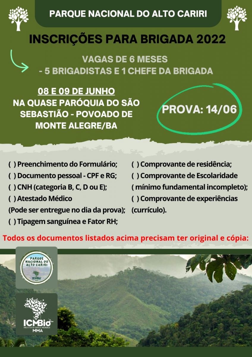 Inscrições abertas para a BRIGADA de INCÊNDIO do Parque Nacional do Alto Cariri