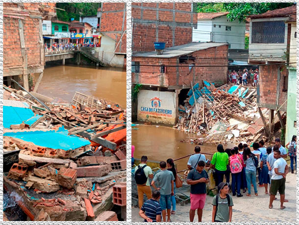 O caso aconteceu ontem quarta feira (23). Segundo a Defesa Civil do município, outro imóvel onde funcionava um bar foi atingido pelo desabamento. Não há registro de feridos.