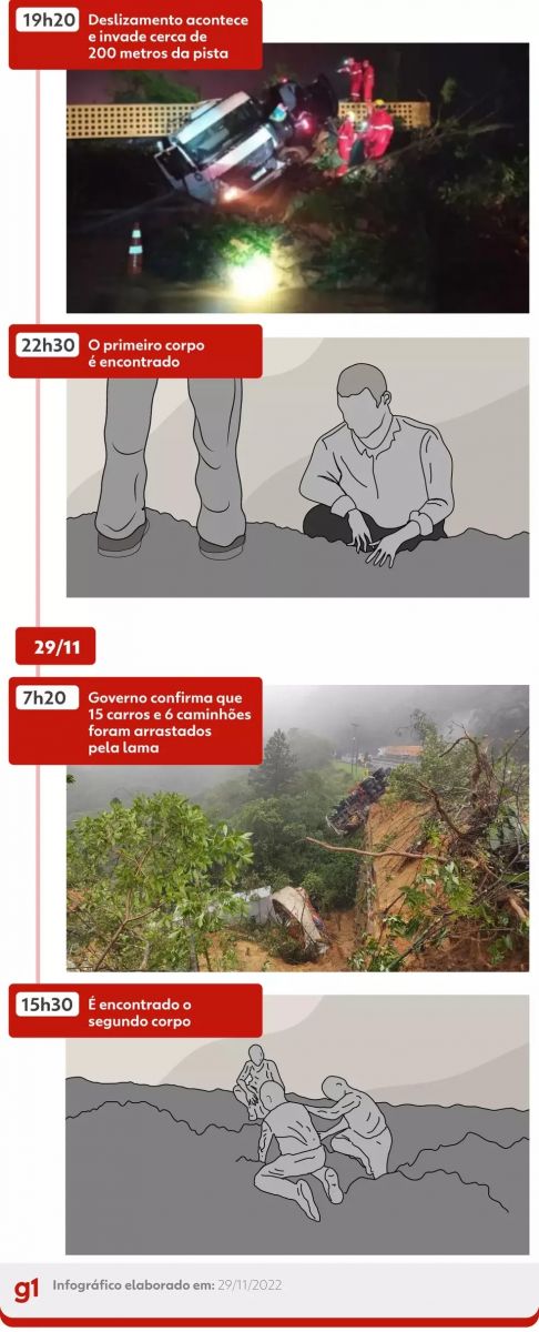 Ainda segundo o governo do estado, uma equipe da corporação continuará no local para trabalhos preventivos, bem como equipes da concessionária Arteris Litoral Sul, responsável pelo trecho. A Polícia Rodoviária Federal (PRF) também permanecerá no local.