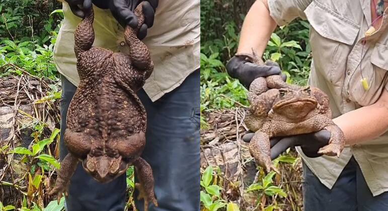 O animal, um gigante de 2,7 kg e tamanho de um antebraço de humano adulto, foi achado na trilha de um parque em Queensland. O imenso sapo foi retirado do parque e sacrificado, para ser futuramente exposto em um museu.