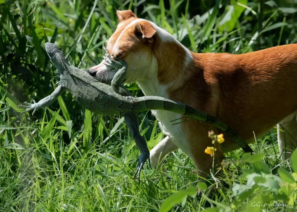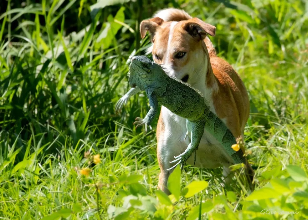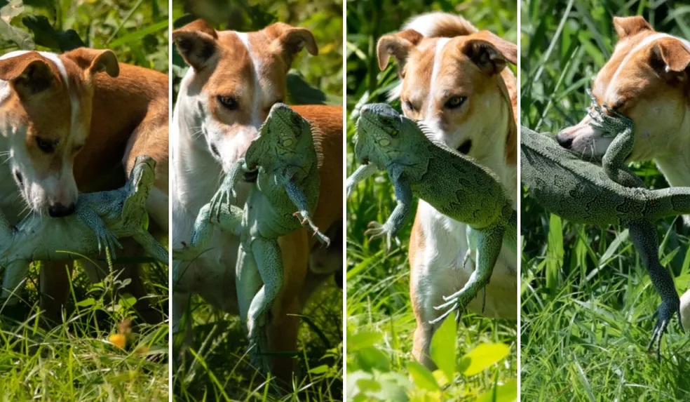As imagens foram feitas na sexta-feira (10) e o fotógrafo comenta que o cão ainda tentou recapturar a iguana, mas sem sucesso. “A reação dele foi de perseguir, mas elas são muito rápidas e exímias nadadoras, era praticamente impossível ele recapturar, apesar de ter ficado um tempo farejando o local e depois se retirou calmamente”.