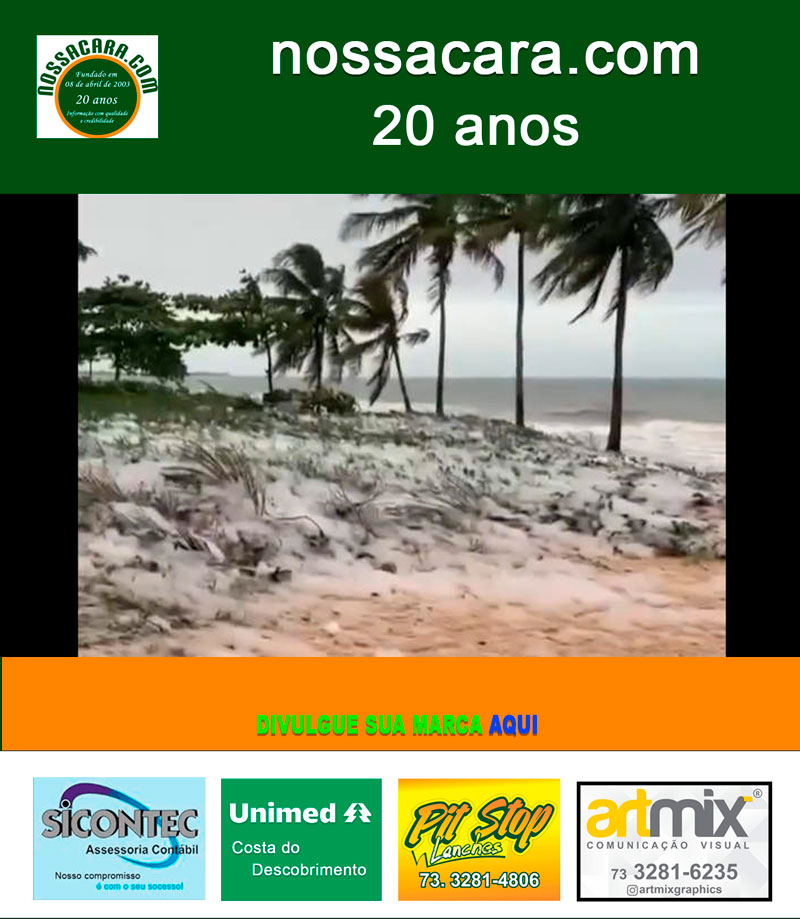 Os ventos costeiros fortes que estão atingindo Porto Seguro há mais de dois dias causaram um fenômeno curioso na tarde desta sexta-feira, 29, na Orla Norte, nas proximidades da Praia do Mundai.