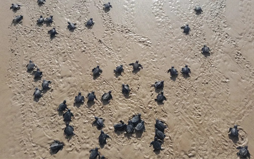 Cerca de 11 mil filhotes de tartaruga nasceram nas praias do sul da Bahia na última temporada reprodutiva, entre setembro de 2022 e abril deste ano. De acordo com o Programa de Monitoramento de Quelônios da Veracel, empresa que acompanha 35 km das praias da região, 222 ocorrências reprodutivas foram registradas neste período.