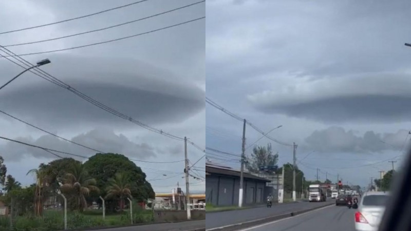Uma peculiar nuvem em forma de “disco voador” atraiu olhares na Serra, na manhã desta quinta-feira (4). O Incaper explicou que, embora apresentasse um aspecto sombrio e imponente, similar às naves alienígenas dos filmes, trata-se de uma “nuvem prateleira”. O fenômeno pode ser visto nas imagens de internautas.