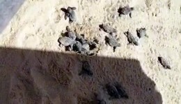 Tartaruguinhas encantam banhistas enquanto correm pro mar na praia de Mundaí