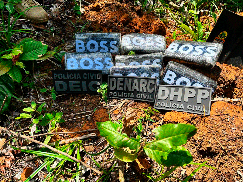 Equipes da Polícia Civil da Bahia localizaram, nesta quarta-feira (24), um ponto de ocultação de drogas utilizado por integrantes de um grupo criminoso, em uma área do município de Madre de Deus. Durante a ação, foram encontrados sete tabletes de cocaína, pesando cerca de um quilo cada. O material estava enterrado e foi localizado a partir de um trabalho integrado de inteligência policial, que possibilitou identificar o espaço usado pelo grupo como forma de armazenamento estratégico.