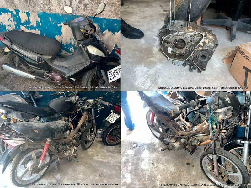 No local, foram encontradas diversas peças e motocicletas em situação irregular. Durante a verificação, constatou-se que um motor de motocicleta possuía restrição de roubo/furto registrada na cidade de Linhares/ES, conforme boletim datado de 2011. Também foi localizada uma motocicleta de 50cc com placa incompatível, além de outra em avançado estado de deterioração, cujo número do motor apresentava sinais de adulteração.