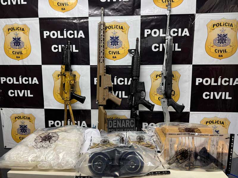 Durante a ação, foram apreendidos dois fuzis calibre .762, um fuzil calibre .556, três carregadores municiados, um revólver calibre .38, nove tabletes de maconha prensada, aproximadamente 1.700 pinos de cocaína, 130 pedras de crack e 62 papelotes de maconha. Todo o material foi recolhido e encaminhado ao DENARC para perícia e demais procedimentos legais.